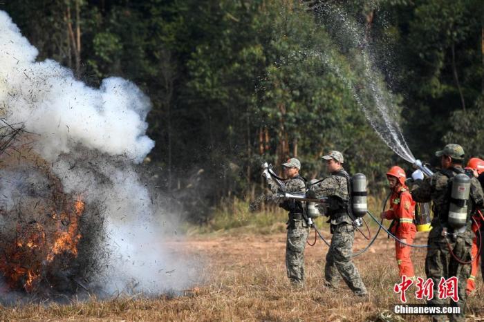 资料图:消防队员进行森林防火技能演练。中新社记者 俞靖 摄