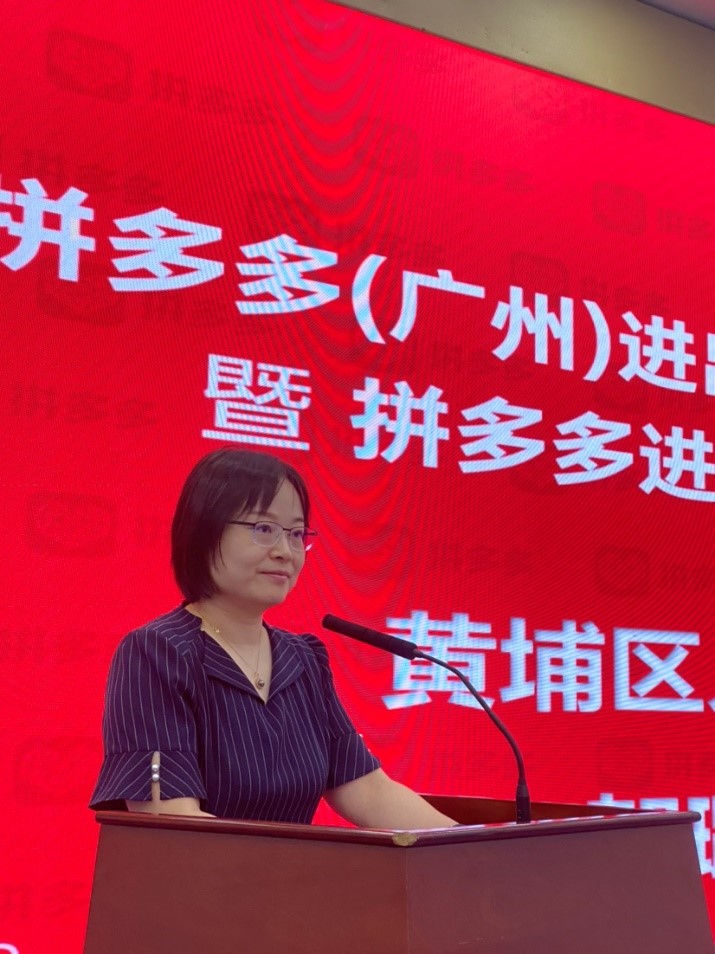 ▲8月26日,黄埔区副区长贺璐璐在拼多多商家交流会上表示,全力支持出口转内销,开拓国内市场。(摄影 石头)