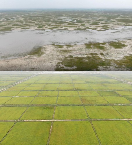 镇赉项目区建平区片盐碱地治理前后的实拍对比图