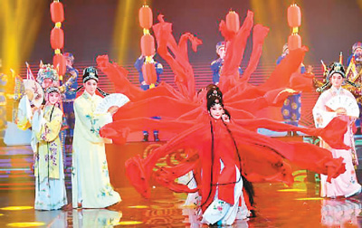 图为2021世界福州十邑春节联欢晚会录制现场的戏剧节目。 (来源:中新网)