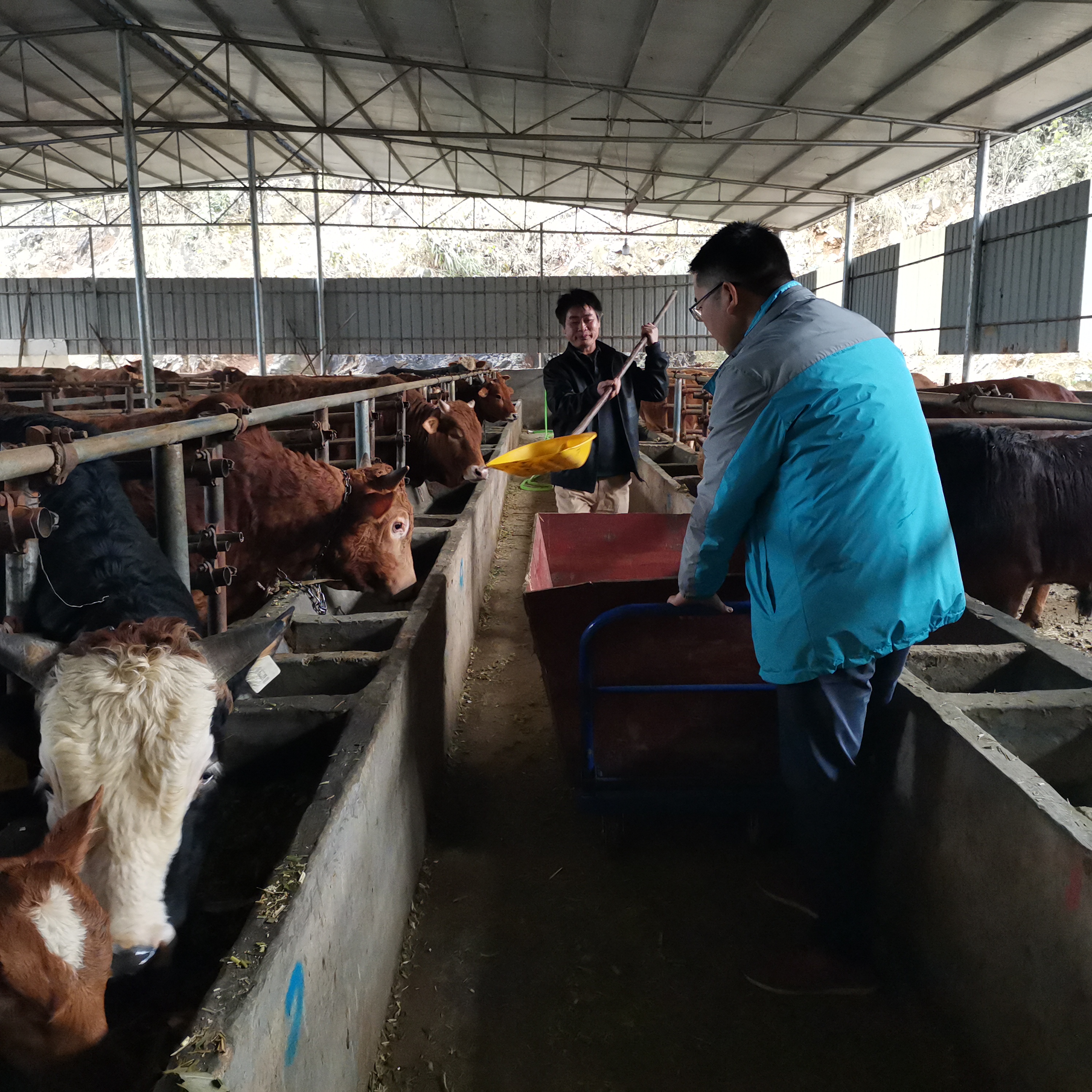 我们的攀谈常常被响亮的哞哞声打断。大大小小26头,一头牛千余斤,每头卖2万元左右,他的GDP大约有40多万元。这些带毛喘气的,就是都安县发展“贷牛还牛”的贡献了。