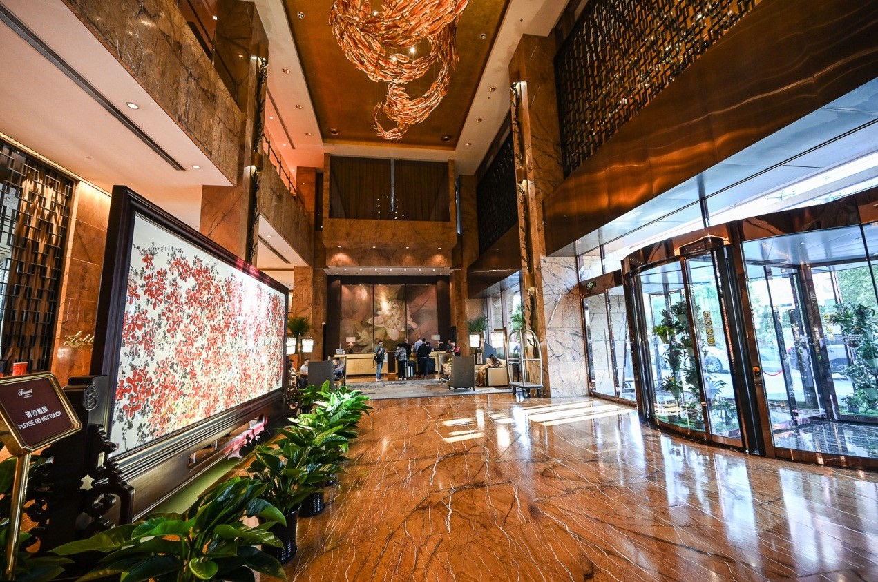 与其他两会住地有所不同,作为一家知名国际化酒店,这座由传统文化与现代艺术相融的酒店非常注重文化的沟通作用,巧妙将建筑与艺术相结合,“东方”和“西方”的陶器、玉器、雕塑、书法等文物艺术品陈列于酒店各空间,消弭了人与艺术的界限,使得宾客徜徉其间,随处可见鲜明的文化印记,俨然置身一座奢华的文化殿堂。