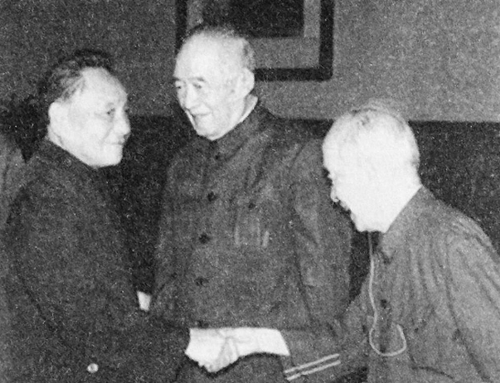 1982年,邓小平接见胡子昂(中)、胡愈之(右)。