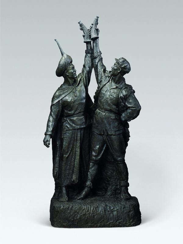 在中国国家博物馆“屹立东方——国家博物馆馆藏经典美术作品展”中,有几件长征题材的雕塑作品,就是此次雕塑集中创作的成果,它们是许章衡的《红军和彝族兄弟》,肖琏、杨发育创作的《小号手》,嵇信群创作的《红军炊事员》。