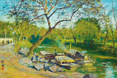 康健园道上(油画)24.6×37cm-1972年-颜文樑