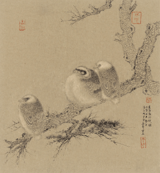 从中国绘画的发展历史来看,早期较关注“形似写实”而“不求形似”—强调“笔情墨趣”的表现,是后期的成熟形态。其实西方的绘画也一样,“后印象派”绘画的美学品性,其涵义即类似我们的“笔墨”形式的“抽象美”。把所描摹的物象进行了一种艺术“变形”的处理,这正是艺术现代化的主要标志之一。而在中国绘画史上,明末一些画家如董其昌、徐渭等人已对所描摹的物象进行了“变形”处理并强调“笔墨”的美学“自律性”,遂进一步发展成清代的“四王”、“四僧”及“扬州画派”等百花争艳的新局面。万鸣的画明显具有与古人不同的“创新”面貌,但不背离传统的正道。他的人物画“变形”十分突出,其神态轻松自如,笔墨线条清新隽永,洋溢出浓厚的文化气息,符合了宋邓椿所倡导的“以文入画”的绘画美学思想。他的画背景或简或繁,或画郊野,或画书斋,但都追求表达一种“境”而不是简单的“景”,使观者领略到了一种平和安详的境界,一种浓厚的书卷博雅之境。又可窥见金冬心、罗两峰的“变形”人物画的依稀面目,但绝不同于前人另辟蹊径。他画走兽多画猿、猫、鼠等。神态诡异,透出精灵野逸之气,似有赋予人之气质、人之风骨,读来如冷气袭来,若有寒意;背景处理,干笔皴擦,虽寥寥数笔,却深邃不可测。笔法从虚谷或新罗的“笔墨”中汲取了一定的营养,但却不泥古守旧。他善画山禽水鸟,也略有“变形”,背景主题不求层次却主次分明,鸟与背景安排得巧妙自然。粗笔细笔兼而用之,“粗”至行草用笔,磊落自由,凛凛大丈夫,大气磅礴。“细”至小楷行笔,刚劲遒娟,谨细入微,柔情绵绵。至广大,尽精微。所以他既能画丈二、丈八巨幅通达之作,也能画方寸精密之小品。大而不空,小而致远,耐人寻味。他画古柏寒林,大笔写粗干,小笔写细枝,开合相宜,阴阳得体。他画禽鸟走兽,散锋、偏锋、中锋、笔尖、笔肚、笔根乃至笔杆活而用之,出神入化。