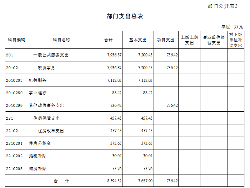 按照综合预算的原则,全国政协机关服务中心的收入和支出均纳入部门预算管理。收入包括:上年结转、一般公共预算拨款收入、事业收入等;支出包括:一般公共服务支出、住房保障支出等。