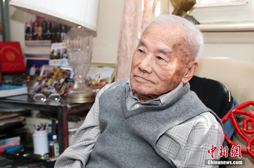 当地时间5月23日,前美国“飞虎队”战士陈锦棠在纽约逝世,享年98岁。陈锦棠祖籍广东台山 ,1943年在美国参军,后加入“美国志愿援华航空队”(“飞虎队”)赴华参加对日抗战,他当时是一名通讯兵。1943年到1946年,他随部队前往云南罗平、湖北恩施和重庆,期间因工作出色而立功获奖。 图为陈锦棠2020年春节在其纽约居所中。 中新社记者 廖攀 摄