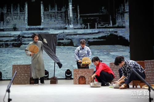 6月1日,中学生在表演话剧《骆驼祥子》片段。新华社发(周良 摄)