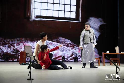 6月1日,中学生在表演话剧《骆驼祥子》片段。新华社发(周良 摄)2