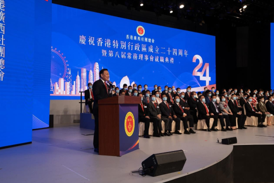6 月 26 日,为庆祝中国共产党百年华诞和香港回归祖国 24 周年,香港广西社团总会在香港举办了香港广西社团总会第八届常务理事会就职典礼。