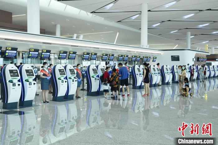中新网成都6月27日电(单鹏 刘忠俊 何浠)“以前经常在新闻上看到成都天府国际机场(以下简称天府机场)的消息,今天新机场通航投运,我们都很高兴。”27日,成都市民谭晓娟带着一家老少专程驱车20余公里赶到天府机场T2航站楼出发大厅,体验这座新机场的魅力。