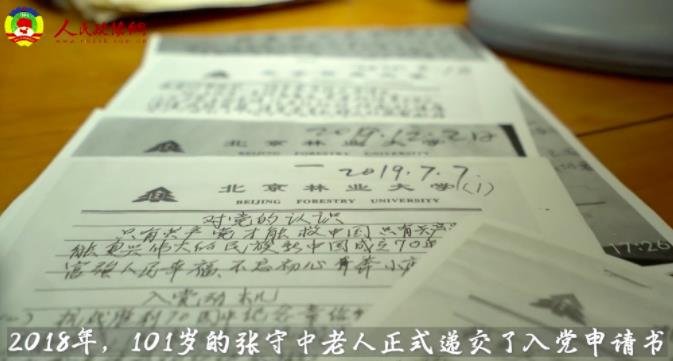 2018年3月,101岁的张守中终于鼓起勇气,向北京市海淀区学院路街道林大社区党组织递交了入党申请书。