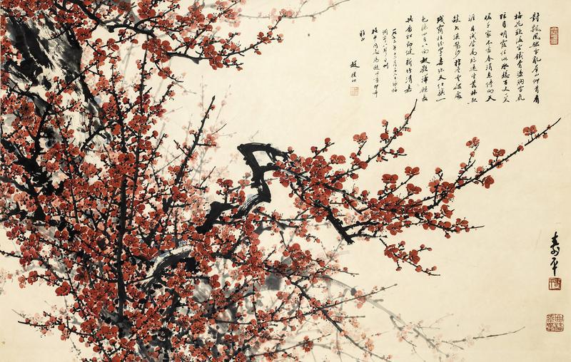 此次展览聚焦于中国绘画本体语言的研究与呈现,以“色彩与中国画”作为策划切入点,共分:几点朱砂花更红(艺术本体)、芙蓉国里尽朝晖(家国情怀)、春来喜气绕华堂(传统文化)三大板块,从科学、社会、文化的维度分别解读中国画里的“红”。展览梳理了中国传统绘画颜色体系,阐释色彩的物质属性与美学价值,进而深入地挖掘了色彩与中国画创作的关系。