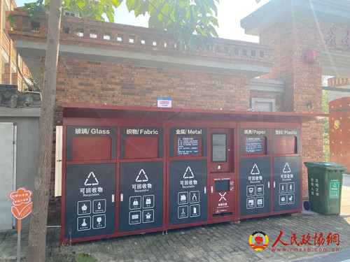 街道一侧设立的垃圾分类回收点。人民政协网记者王慧文/摄