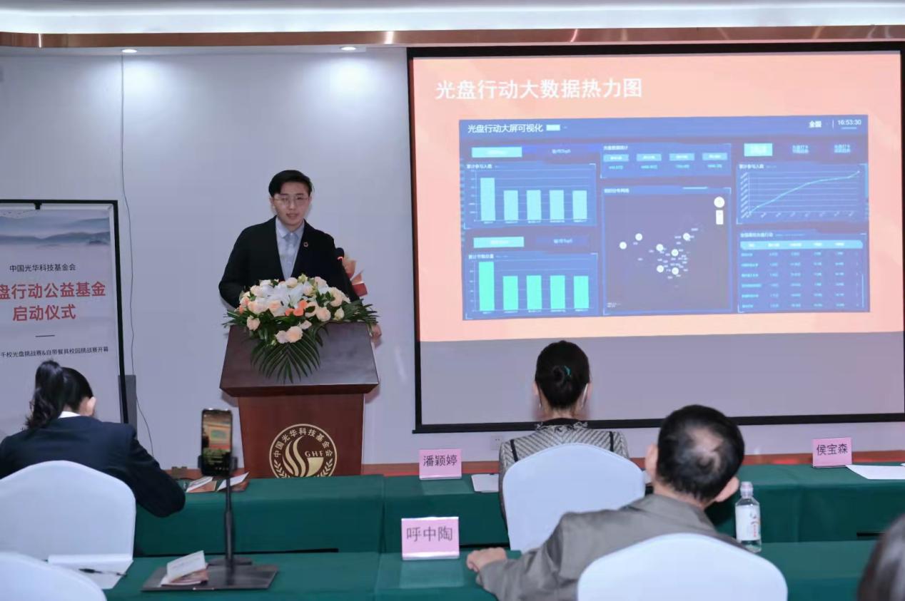 光盘打卡平台创始人柳济琛介绍了平台从2018年成立至今发展至500万用户的历程,并发布了光盘行动大数据热力图。热力图汇聚全国各城市及各高校开展光盘行动的数据,为相关机构提供了管理抓手。未来,光盘打卡将作为“互联网+光盘行动”的载体密切配合光盘行动公益基金开展工作。