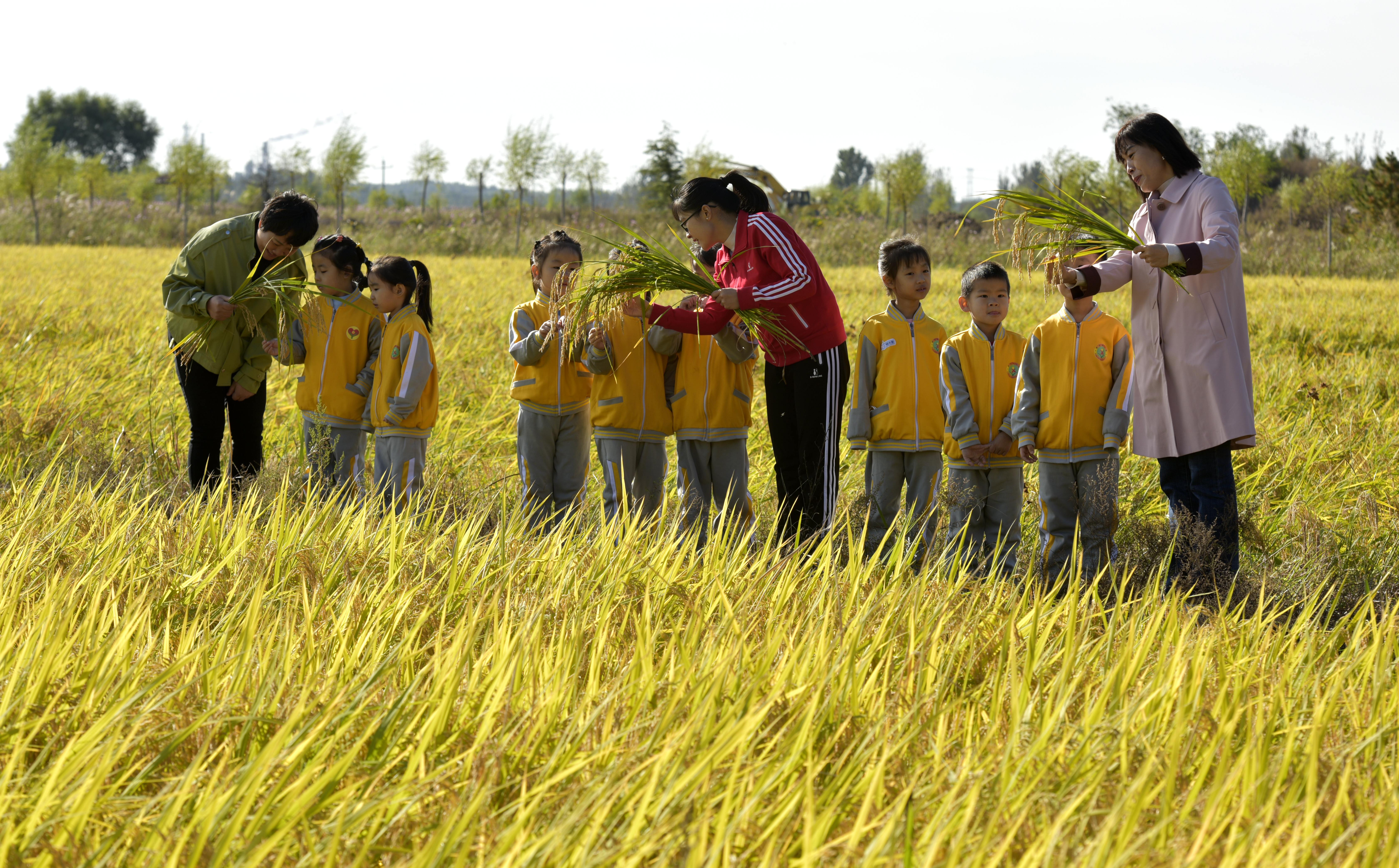 临城县县直幼儿园通过让孩子走进稻田、认识粮食,以及和经典故事结合的方式,让孩子在真实的场景中懂得“粒粒皆辛苦”的道理。 新华社发