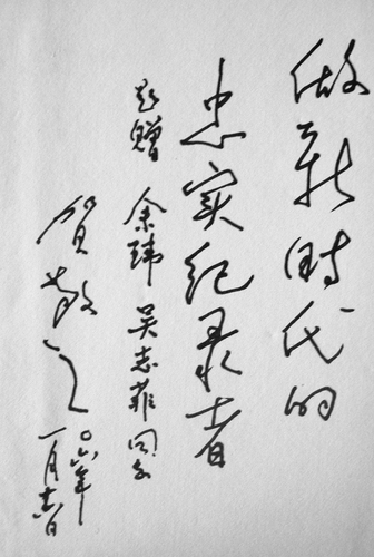 贺敬之从中宣部副部长、原文化部代部长岗位上退下来后,大部分时间在和疾病作斗争,除了之前查出的肺癌,又患了白内障,腿脚也不好。尽管这样,他还是先后整理出版了《贺敬之诗选》《贺敬之诗书集》《贺敬之文集》,还写了不少回忆性和总结经验的文章,即兴而作的诗歌也不在少数。