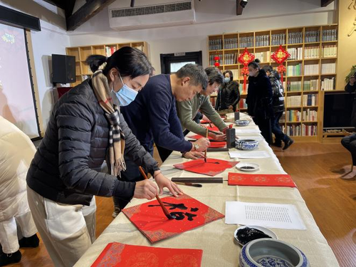 在梅园新村街道,玄武区政协教卫体(文化文史)委联合梅园新村街道政协工委,邀请书画家委员们到小红梅党建教育基地开展“缘聚小红梅·福送百姓家”活动,为梅园新村社区居民和基层工作者送去了暖心的问候和节日的祝福。