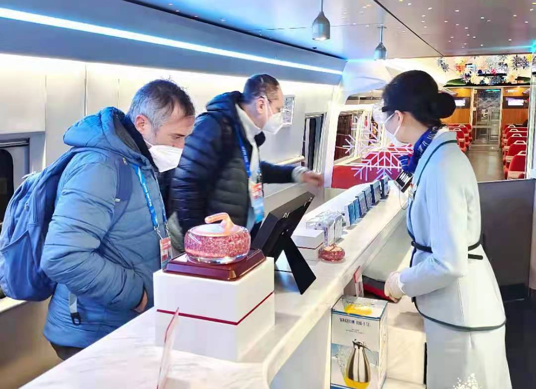在列车上,她们全程保持着得体的站姿,微笑着为中外友人服务,并用流利的英语向外国友人介绍智能高铁设备设施。“雪之梦”乘务组列车长贾士丛说:“冬奥列车是服务于世界各地运动员和旅客的,语言是第一关,从百年京张变迁、奥运知识再到应急服务,乘务组的每一名乘务员对英语等其他语种,都可以进行随时切换。”