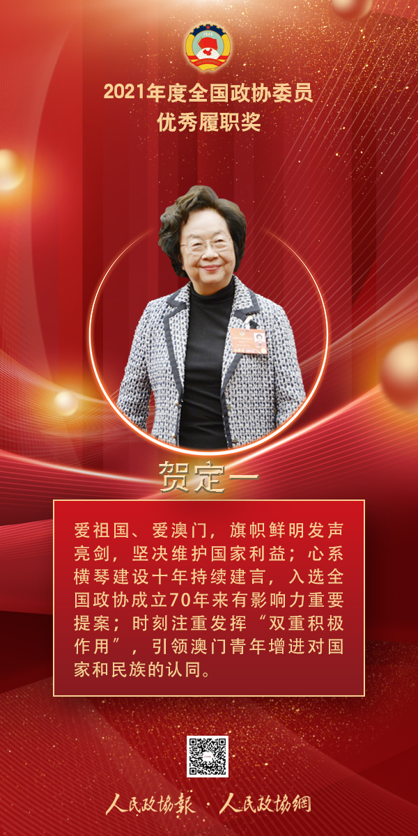 获奖感言 担任政协委员近30年,我努力做到知责于心,担责于身,履责于行,坚持爱国爱澳,在大是大非面前坚守正确政治方向,同时注重青少年爱国主义教育,确保“一国两制”薪火相传。优秀履职奖是一份厚重的荣誉,更是一份沉甸甸的责任。今后,我更要不忘初心、牢记使命,不负优秀履职奖的光荣称号!