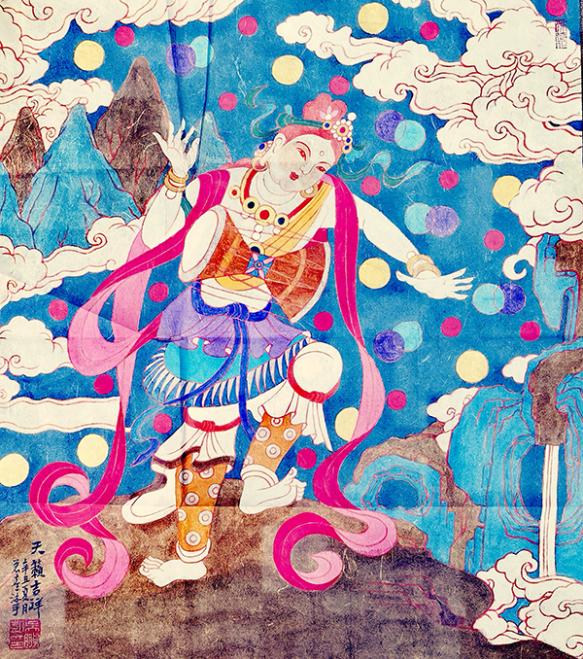 其实,对创新,山鹏一直孜孜以求。他始终认为,画作要恪守传统,但又不能拘泥于此,画作是有时代性的,如没有创新,便是无本之末。在创新的路上,他大胆尝试,出精品力作。他早期画人体仕女,但需要真模特,不方便,琢磨再三,转向画古代仕女,以唐卡的形式呈现出来。他的这种画法,在画界独树一帜,轰动了画坛。唐卡是民族的瑰宝,如今活力、魅力重现,极大弘扬了中华文化。