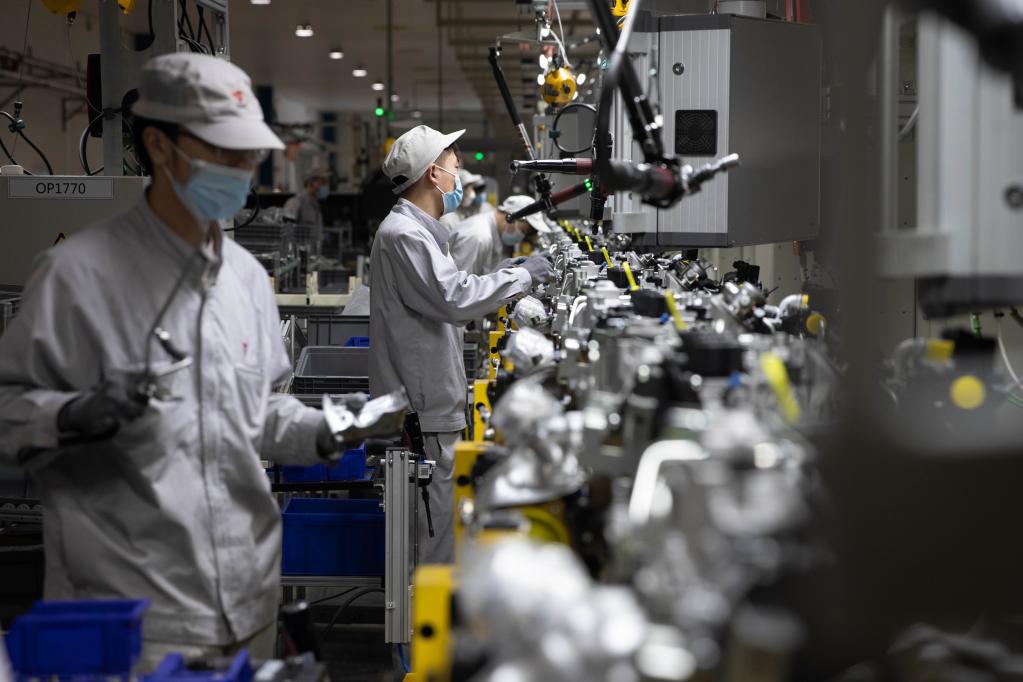 3月23日,工人在哈尔滨东安汽车动力股份有限公司生产车间内进行装配作业。 新华社记者张涛 摄