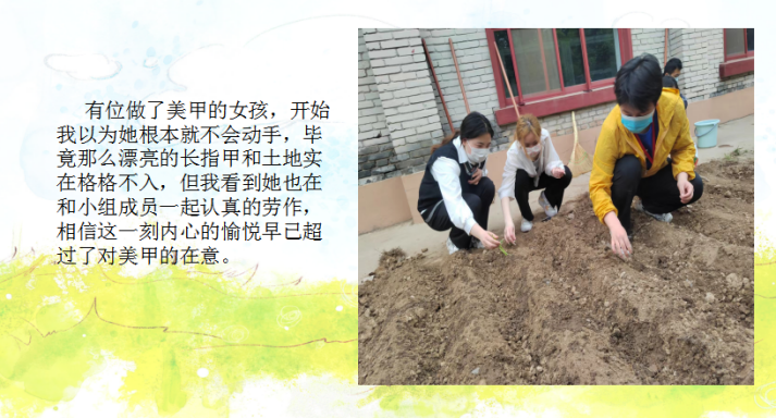 通过引导和组织学生以团体辅导的形式参与课程,促使他们在动手劳动过程中,逐步学习掌握劳动知识、磨练品格、体验责任感和成就感,同时也在实践中不断认识自我、反思自我、提升自我,在户外实践和内在体验相结合的教学方式和内容中,达到劳动教育和心理教育并举的效果和目的。