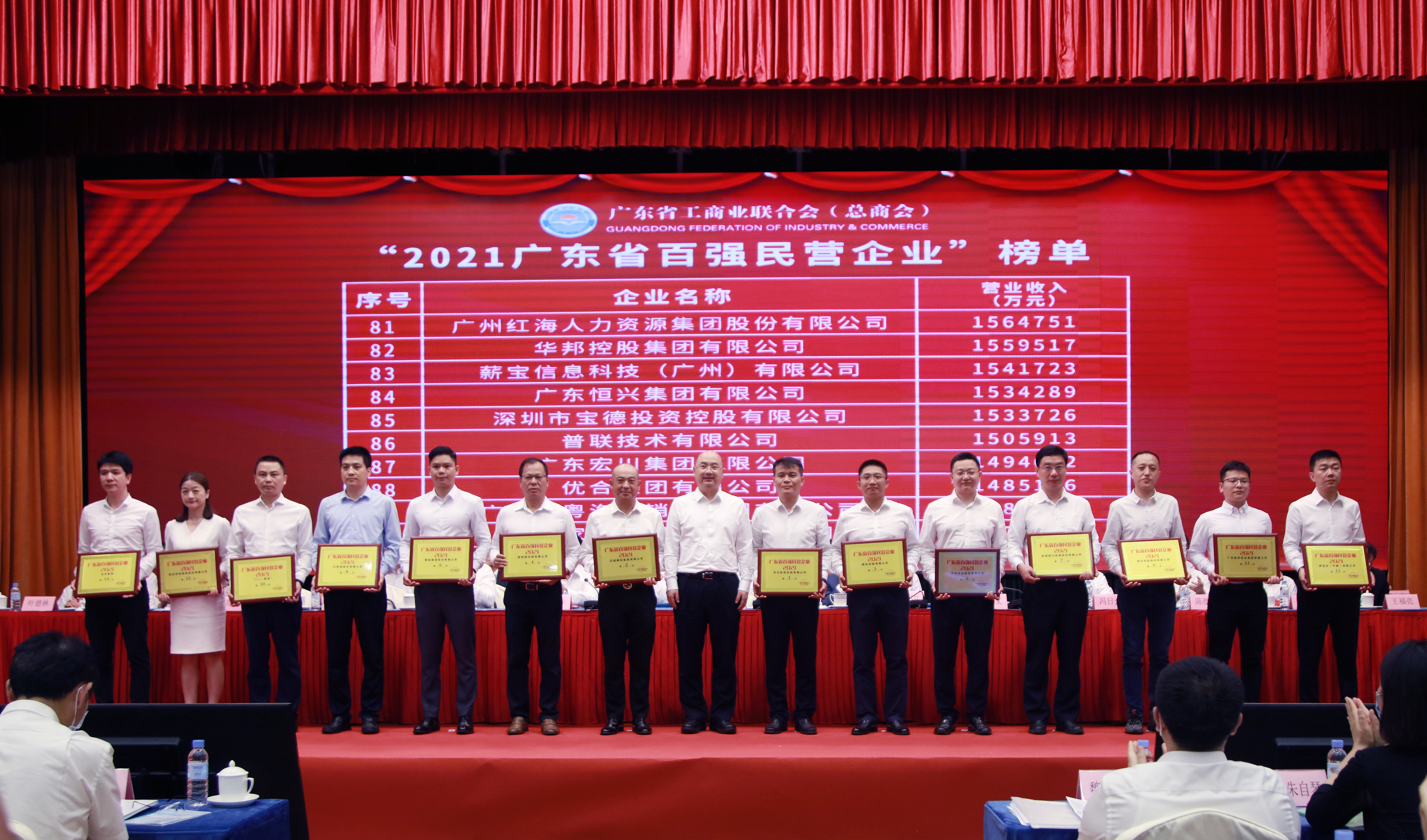 会议为“2021年广东省百强民营企业”代表颁牌。在今年全国工商联组织的上规模民营企业调研活动中,广东民营企业表现抢眼,共有61家入围2021中国民营企业500强、45家入围中国制造业民营企业500强、23家入围中国服务业民营企业100强,有70家入围2021民营企业研发投入500家榜单、67家入围2021民营企业发明专利500家榜单,入围数均位居全国前列。
