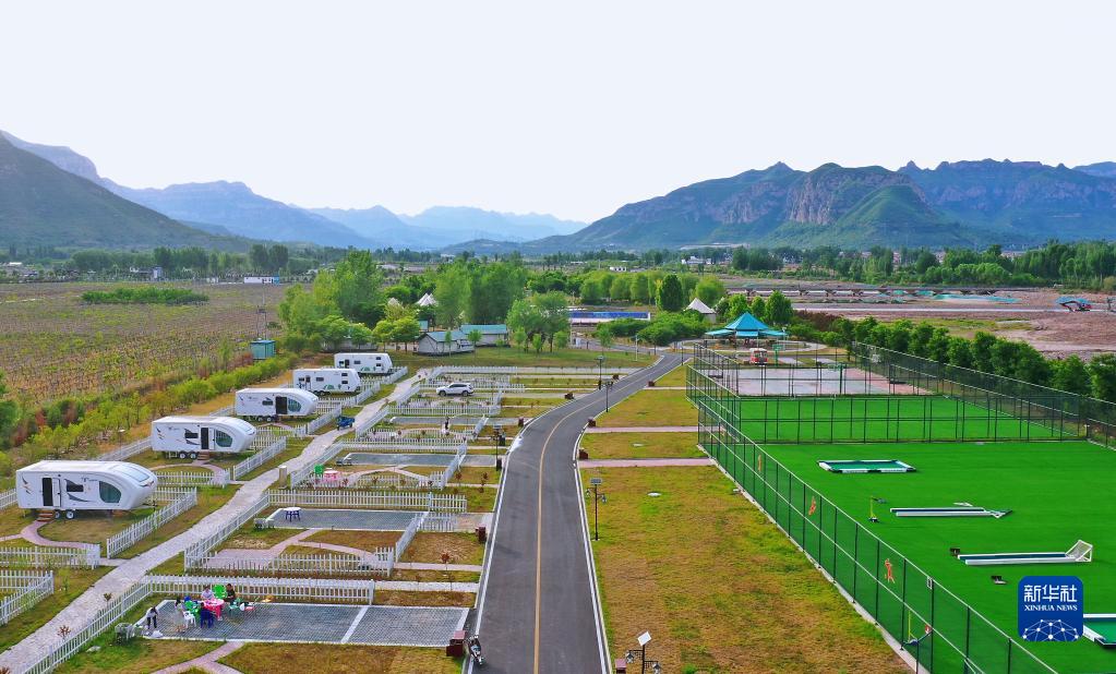 这是5月29日拍摄的河北省涉县太行红河谷一处房车露营地(无人机照片)。