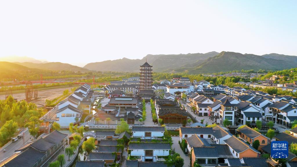 河北省涉县赤水湾古镇旅游区景色(5月30日摄,无人机照片)。