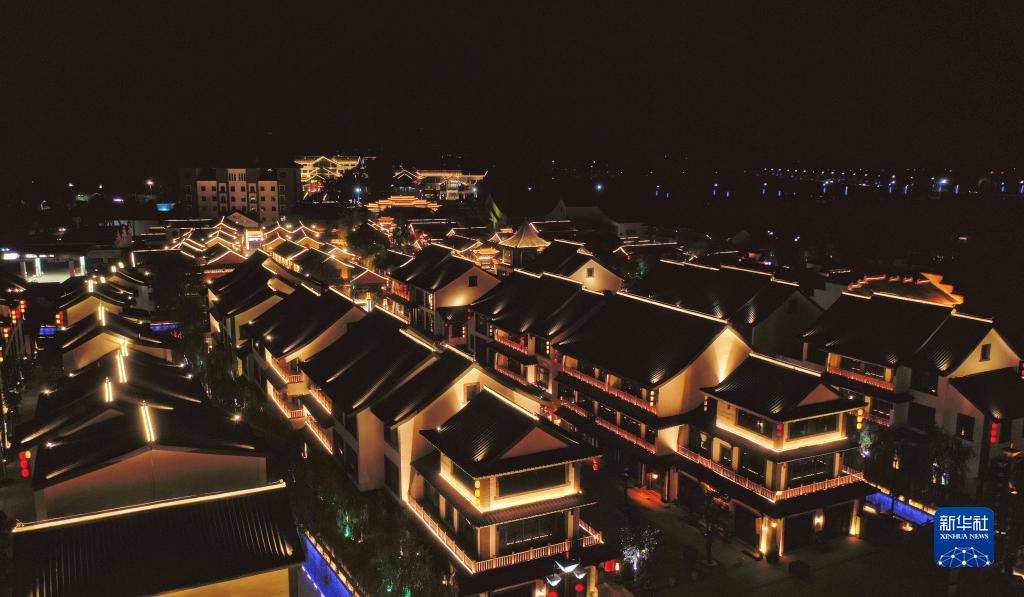 河北省涉县赤水湾古镇夜景(5月30日摄,无人机照片)。