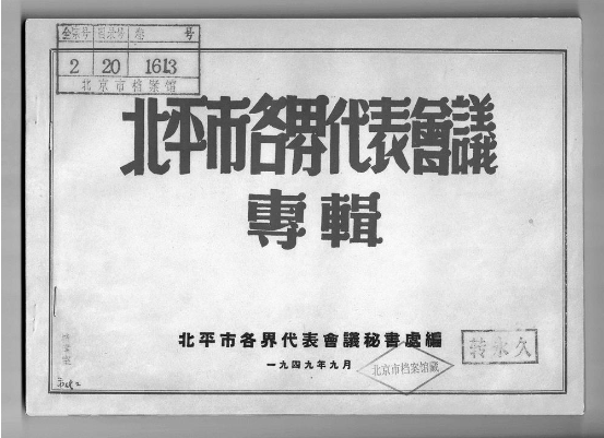 一九四九年九月北平市各界代表会议秘书处编《北平市各界代表会议专辑》封面