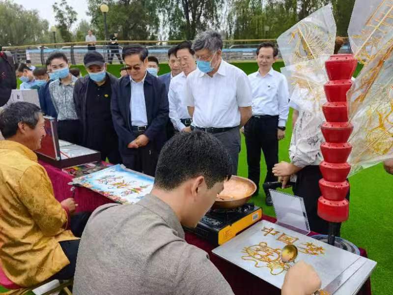 △调研组观看淄博民间艺术展示。