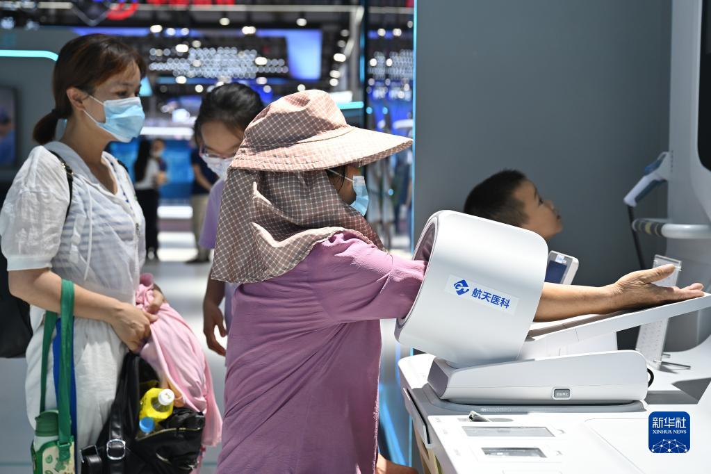 7月22日,观众在第五届数字中国建设成果展览会上体验智慧医疗项目。 新华社记者 周义 摄