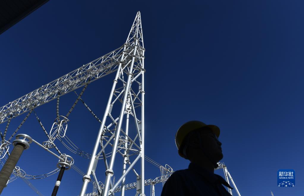 在位于青海省海南藏族自治州共和县境内的青海-河南±800千伏特高压青南换流站,一名运维人员在站内巡检(2021年3月3日摄)。新华社记者 张宏祥 摄