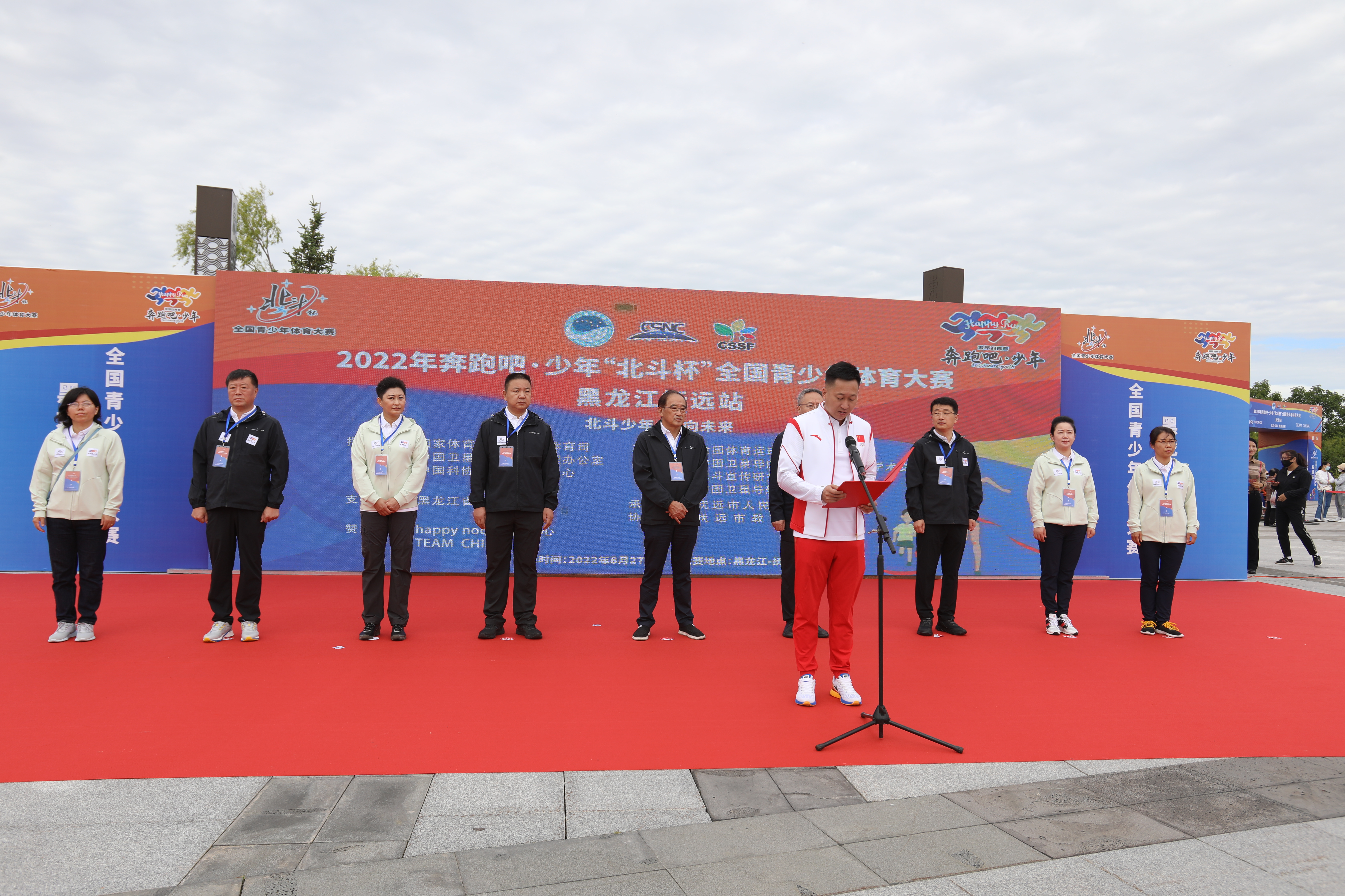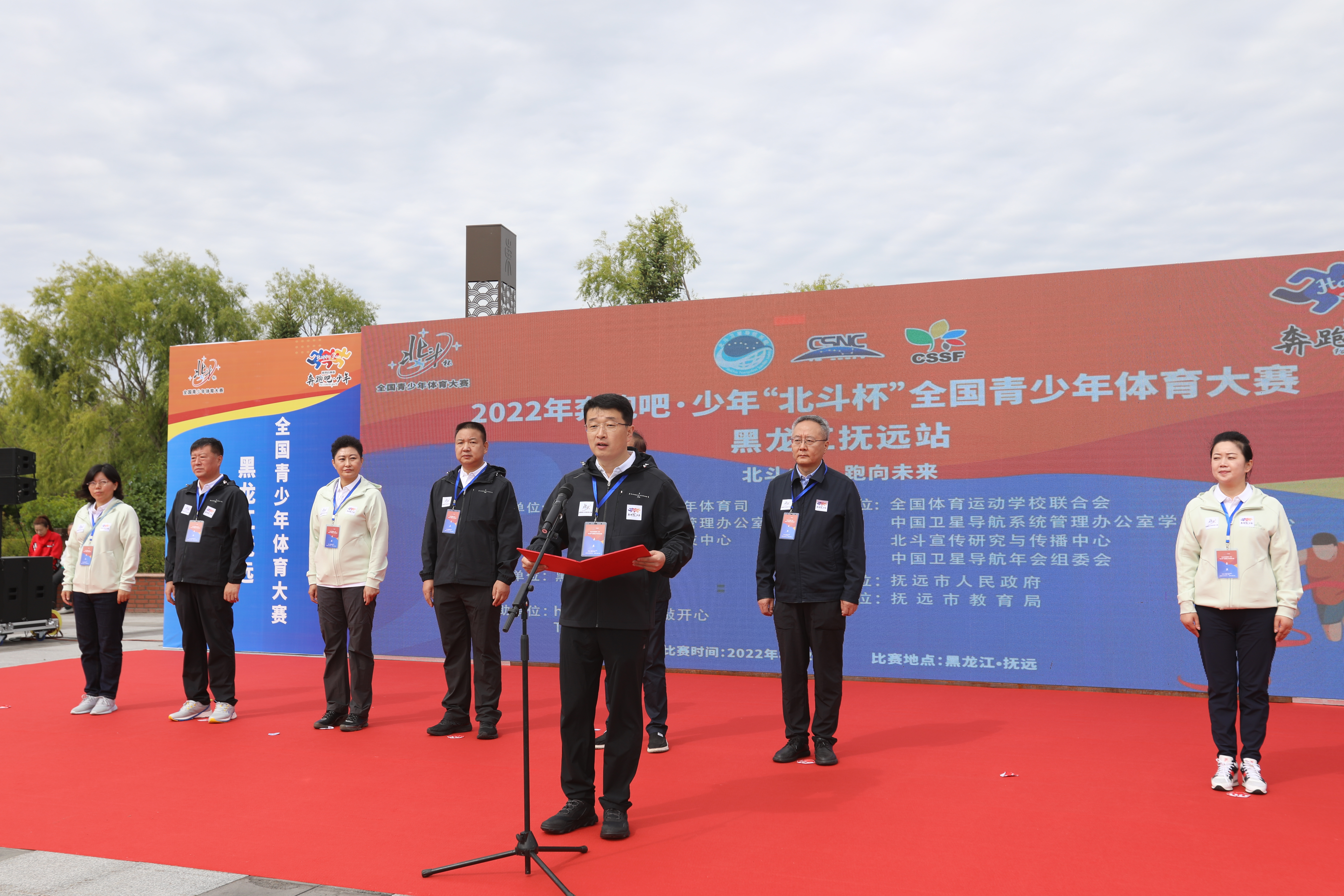 本次比赛在国家体育总局青少年体育司、中国卫星导航系统管理办公室、中国科协青少年科技中心的支持指导下,由全国体育运动学校联合会、中国卫星导航系统管理办公室学术交流中心、北斗宣传研究与传播中心、中国卫星导航年会组委会联合主办,抚远市人民政府承办,并得到了黑龙江省体育局的大力支持。抚远市市长范继涛主持了启动仪式。全国体育运动学校联合会理事长韦迪,国家市场监管总局宣传司司长于军,中国卫星导航系统管理办公室副主任陈谷仓,佳木斯市委常委、抚远市委书记何大海,黑龙江省体育局一级调研员姚伟丽、佳木斯市教育局局长孙秋丽、佳木斯市体育局局长王科明、国家体育总局运动医学研究所骨关节康复科主任、运动健康中心脊柱门诊专家娄志堃、北京跟踪与通信技术研究所高级工程师、北斗地面试验验证系统副总师卢鋆参加了启动仪式。国家体育总局青少司副司长一级巡视员王雷和黑龙江省体育局党组成员副局长董晓冬虽未到现场,也通过视频发来了祝福和寄语,最后由全国体育运动学校联合会理事长韦迪宣布比赛正式开始。