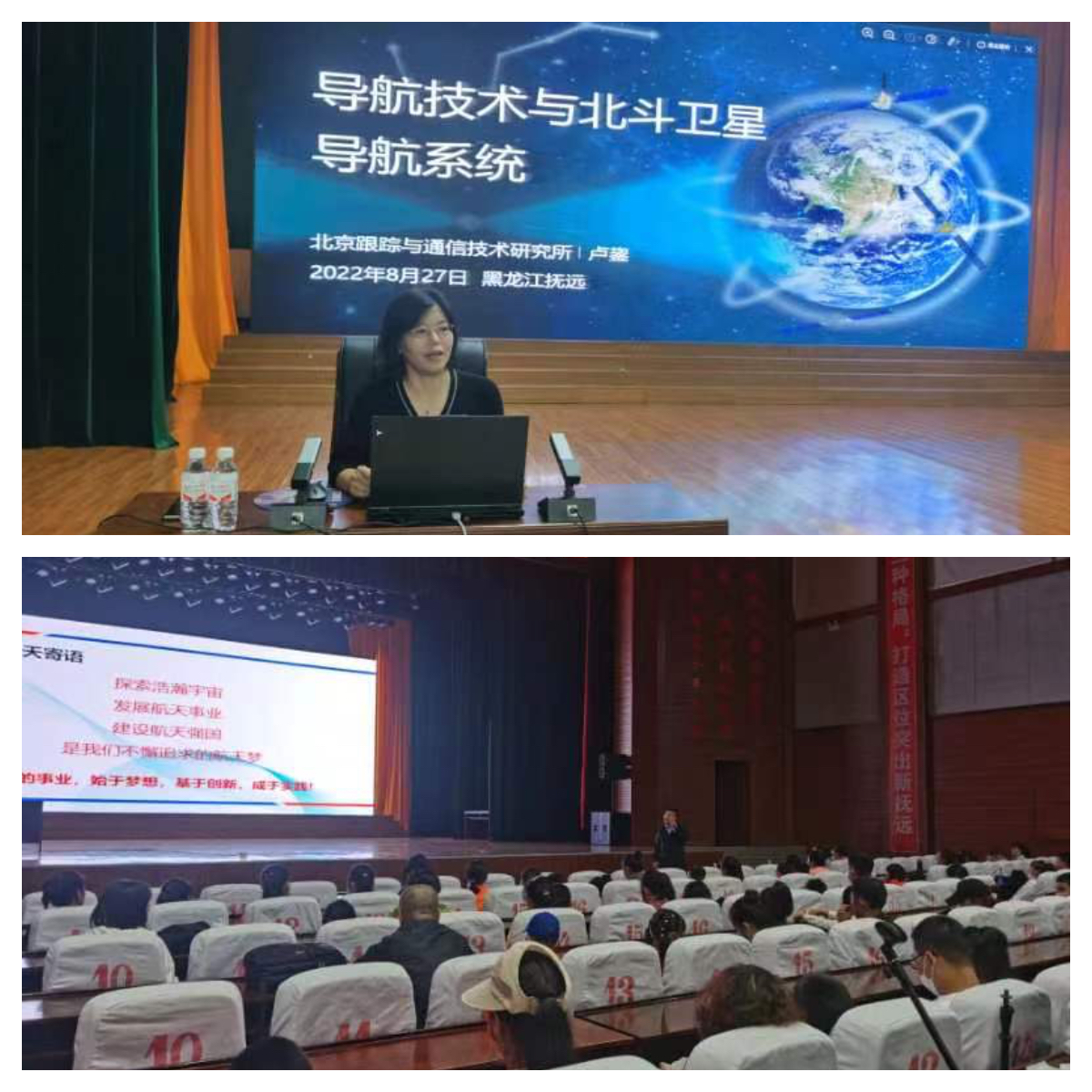 北斗领域专家为抚远中小学生做科普讲座。(主办方供图)