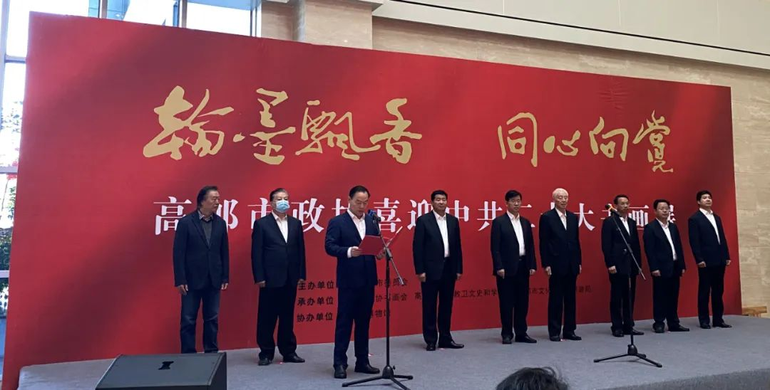 10月10日上午,“翰墨飘香 同心向党”高邮市政协喜迎中共二十大书画展在高邮市博物馆开展。市政协主席徐永宝出席活动并宣布书画展开幕。市政协副主席张贵龙、张拥军、孙禹文、林恩茂和市政协秘书长仇家春出席开幕仪式。
