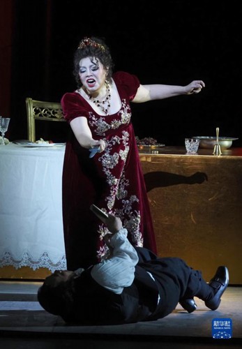 当晚,由国家大剧院、上海歌剧院与陕西大剧院联合制作的新版普契尼歌剧《托斯卡》在上海大剧院上演。此次演出特别邀请上海歌剧院院长、著名指挥家、钢琴家许忠执棒,著名女高音歌唱家和慧领衔主演。新版歌剧《托斯卡》还将在北京、西安和福建巡回上演。新华社记者 任珑 摄