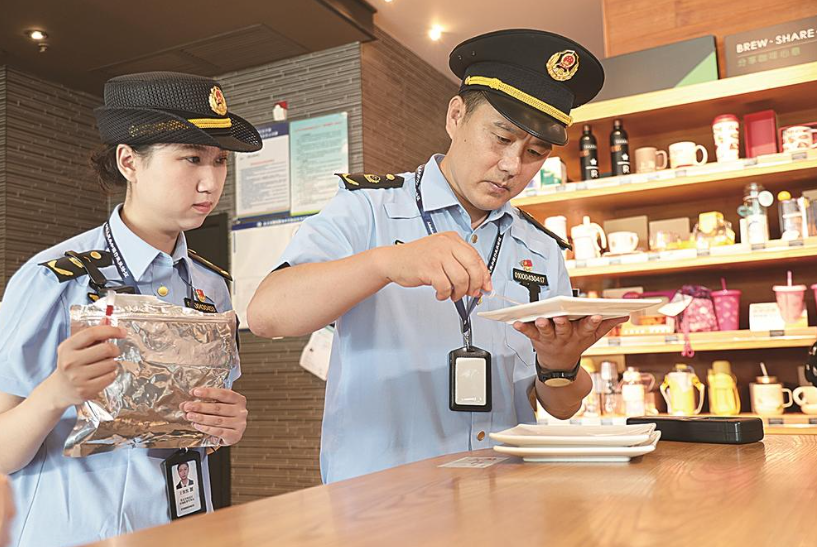 北京市海淀区市场监管局近日开展“随机查餐厅”专项行动。在检查现场,执法人员使用ATP荧光检测仪随机对餐具和食品加工器具洁净程度进行抽样快检,并向现场就餐的消费者告知检测结果,坚决守护人民群众“舌尖上的安全”。