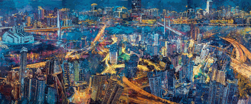 梦幻之都(油画)600×250cm-2021年-张-杰