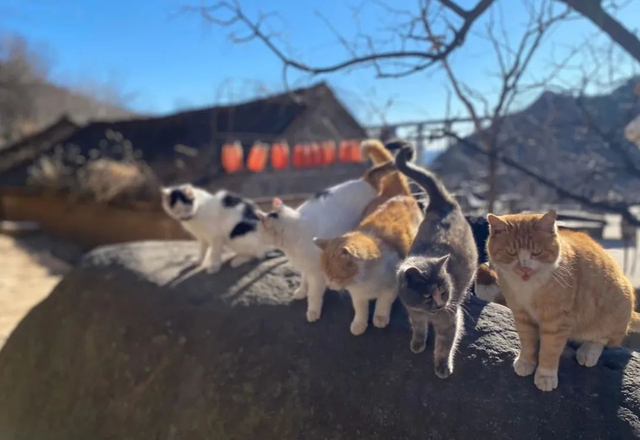 “猫村”是国内第一个猫主题的自然村落,也是乡村振兴建设的平台和艺术乡建的发生地。2019年,艺术家周合伟携三只野猫团队进驻黑崖沟开展公益教学活动。期间,正值当地村民脱贫搬迁,偏远山区的村民搬进了城镇,村民的猫大多留在了村里。周合伟团队关注到了留守猫的现象,并开始喂养它们。后来在当地政府的帮助下,周合伟团队开始在搬迁完成后的迁出村庄进行建设,久而久之自得其名为“猫村”。