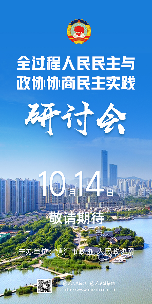 (记者 王亦凡 马嘉悦 袁世鼎 汪凯 许义甫)10月14日,由镇江市政协、人民政协网主办的“全过程人民民主与政协协商民主实践”研讨会将在镇江市举办。