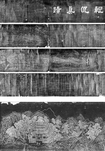 最珍贵的是万历四十五年沈国华的刻本。石刻共六块,每一块长104厘米,宽30厘米,是沈国华苦心寻找到郭忠恕的摹本,又从自己家乡找来高级刻工郭世元,刻制而成。专家认为,这是最接近王维《辋川图》原貌的石刻。