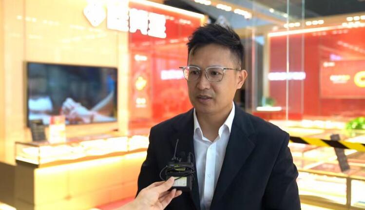 广西桂金品牌管理有限公司运营总监李燕锋讲述平桂区本地黄金珠宝品牌“桂·黄金”首家品牌连锁直营店经营情况。人民政协网记者 信鑫 摄