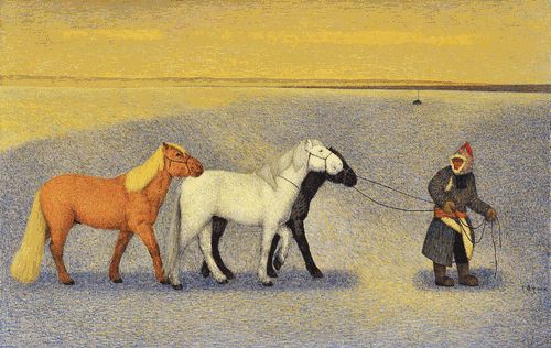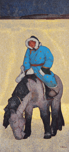 这些年来,对油画创作理念、方法和技巧的思考和研究,以及系列的北方草原题材油画创作实践(如作品《布里亚特之晨》《布里亚特的女人们》《守望草原》《苏力德大战沙暴》《今日草原》《少年巴特尔的梦》《踏雪牵马图》等),呈现了我关于北方草原题材油画创作的基本样貌。