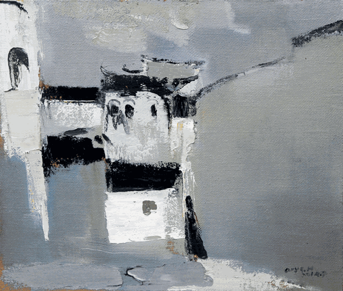 对进行艺术创作的人来说,能够产生自己满意的作品不容易,能够生成具有语言特质的艺术表现性更不容易。王永国这批作品表现出的探索性特点,在于他对运笔、色彩、画面结构等语言要素表现力的专注,如《古巷深处》《屏山长云》等作品,以油画特有的丰富色层肌理、笔刀之痕等语言形式,将类型化的南方村落表现为一种深具油画美学品格的意象呈现,这种油画美学是具有浓郁中国味的。