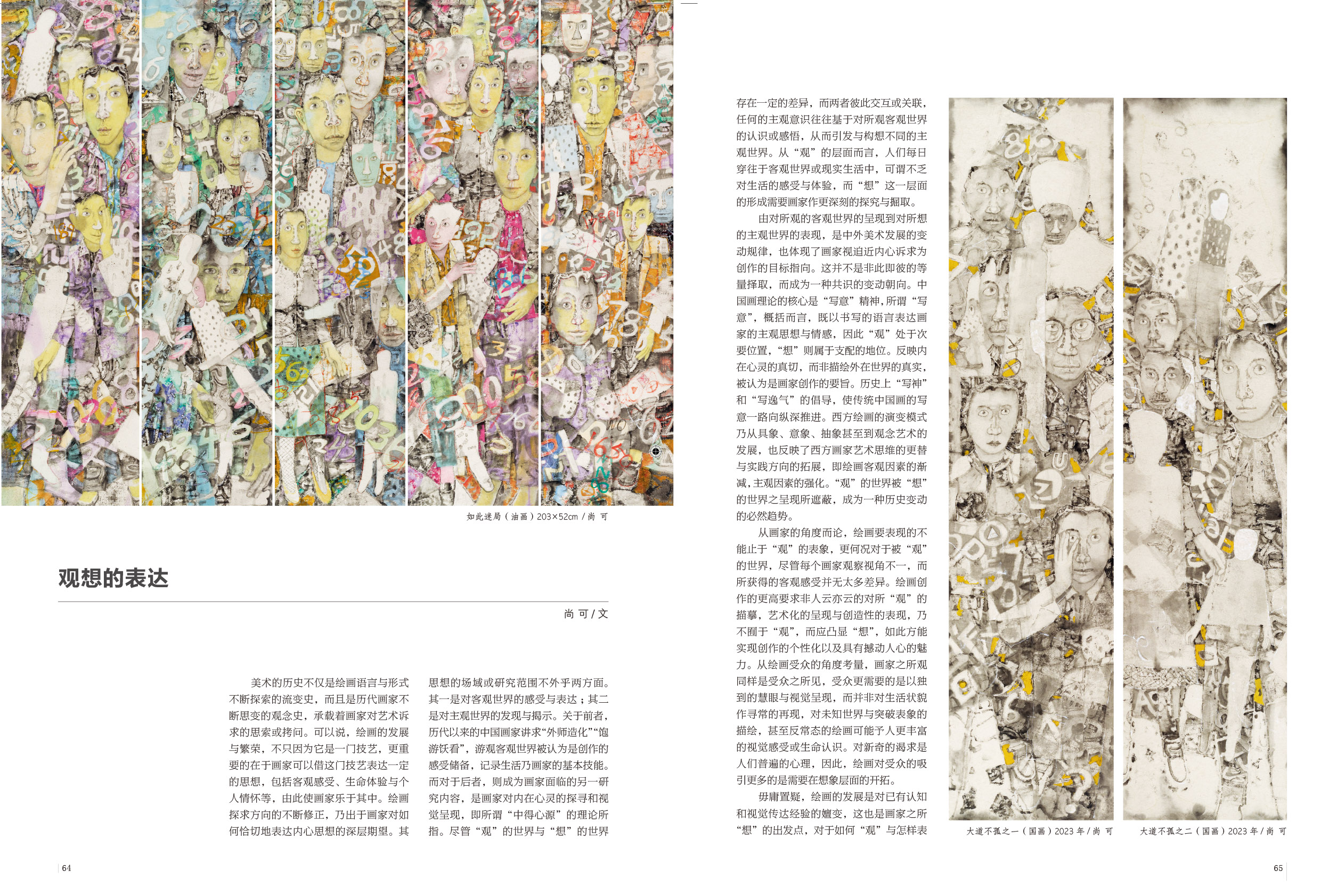 毋庸置疑,绘画的发展是对已有认知和视觉传达经验的嬗变,这也是画家之所“想”的出发点,对于如何“观”与怎样表现所“观”,历史上有着丰富的经验,同样地,对于“想”的层面的理论与实践也存在诸多的范样,可以说,画家寻求“想”的独到与较好的表现所想,不仅使其作品具有鲜明的特征,而且会引发绘画诸多变化的可能。追索西方绘画的发展,其现代性是以对主观意识的张扬为重要标识,这种绘画潮流的产生,不只是由于影像技术的逐渐发达而产生的对具象写实的反思,而更重要的则是基于为实现绘画本体的超越而做出的选择。以印象派为发端,其后的表现主义、抽象主义都游离于所“观”,强调艺术思想的致胜,从而使西方绘画呈现出风格各异的繁荣。在这种繁荣的背后,可以看出艺术观念的反叛与绘画思想的变异是绘画出新的根本所在。自由的想象甚至“大象无形”的绘画创作,为人们带来了别样的视觉观感。对社会问题与人性的揭示之类的创作,不仅反映了主题内容的深刻,而且那种更为夸张的表现,体现了画家主观诉求的强烈意识。