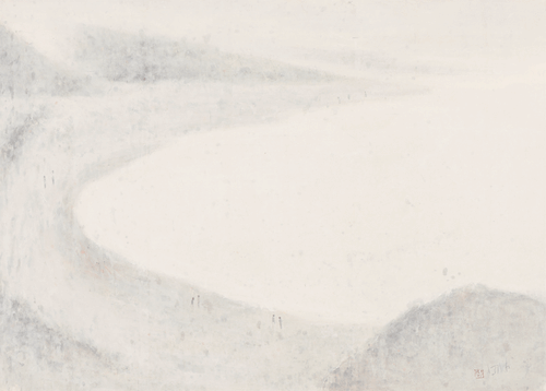 当代水墨如何与大海相遇?中国古代水墨艺术与大海的相遇,总是离不开仙山楼阁的幻境,从唐宋到明清都是如此,尤其是对生活于烟台的艺术家而言,“蓬莱仙境”的想象一定是不可绕开的背景,但对处于现代旅游场景中的艺术家而言,他如何把这种仙境的想象转化为个体生命的心境呢?如何使之重新获得现代的“灵晕”呢?杜小同在十年前主动去到烟台生活,或者选择烟台这个并非家乡的位置开始新的水墨绘画时,他必须一个人去寻找与大海相遇的方式,他必须找到自己的大海,这是一个人的大海,一个人涵泳的世界。一个人与大海的相遇如何以艺术的方式发生?不是直接写生,也不是油画创作,不是传统的山水程式化操作,但又必须接纳油画的光影变化与视觉远近的空间层次,同时,还要保持古典的意境,又要求不露痕迹地传达出来。这需要一次新的综合,山水与风景的叠印,内心与大海相互契合,进行一次新的诗意综合。这就需要艺术家面对大海的浩瀚与寂寥,进入内心的涵泳,把内心深处的涌动诉诸笔端,寻找与大海的契合点,或者进入大海地平线的召唤。我们就听到了小同这十年面对大海的心语,那是他独有的语言:一、寂寥而广漠的灰色;二、远影自在的呼吸;三、潜心涵泳的虚淡心境。